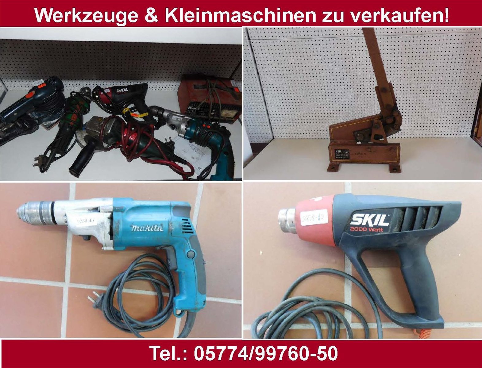 Diverse Werkzeuge und Kleinmaschinen. Preise sind individuell, je nach Artikel.
